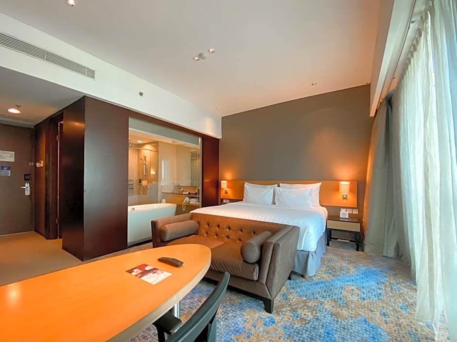 Spacious room features a bigger flat-screen satellite TV, personal safe and a work space. Private bathroom comes with a bathtub. Guests enjoy exclusive access to Ambassador Club Lounge.